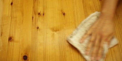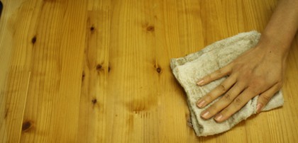 ワックスを布やきれいな雑巾に取り、木目にそってまんべんなくすり込むように塗布してください。